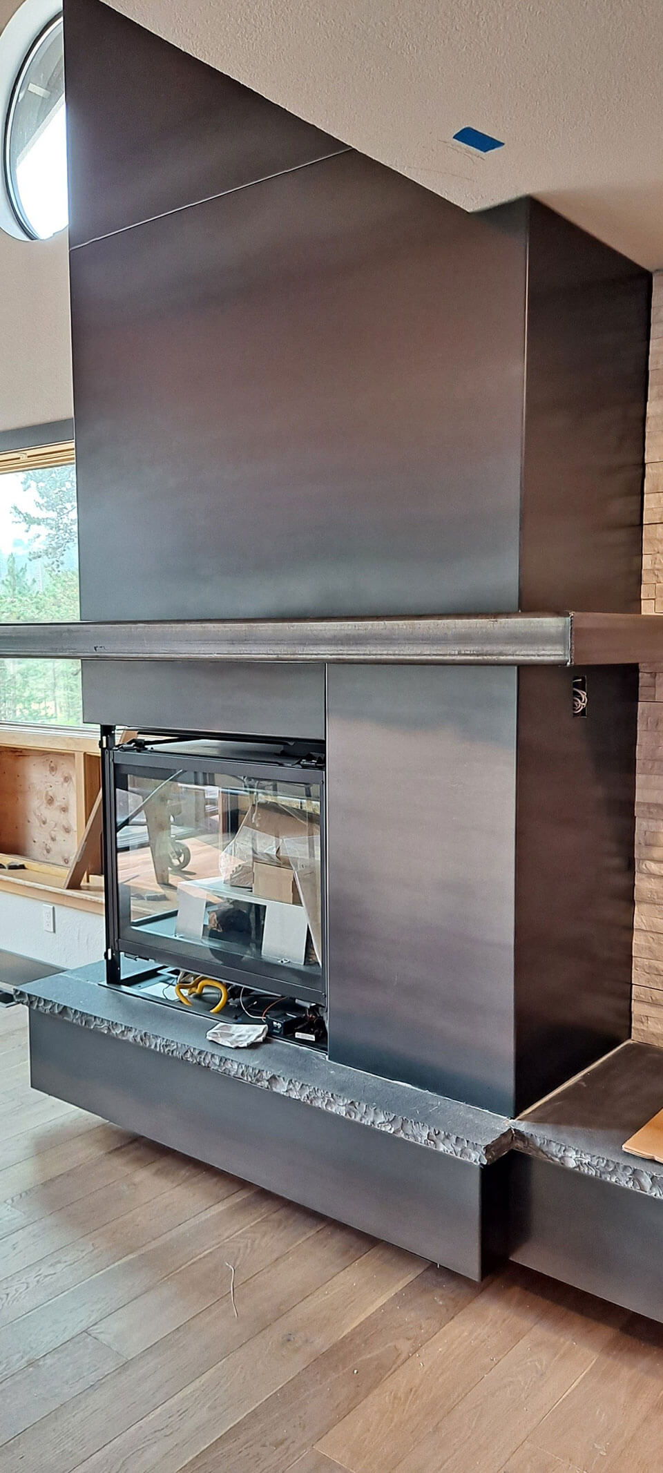 We fabricate surrounds, mantels, screens, doors, and decorative hoods in steel, blackened steel, stainless steel, copper, and bronze. Whether your aesthetic leans toward rustic mountain lodge or clean contemporary lines, our work creates a fireplace presence that catalog products simply cannot achieve.