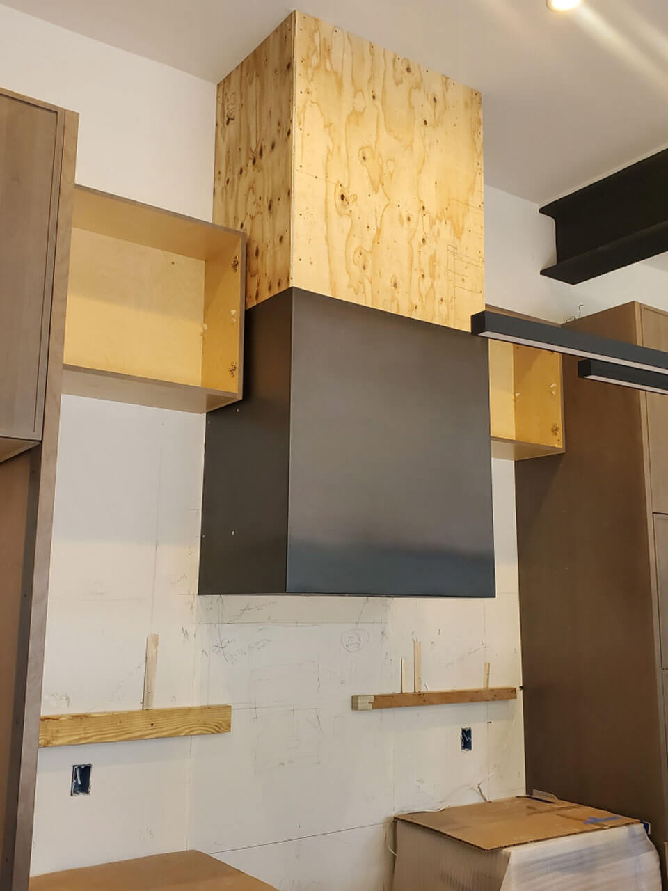 Chase cladding is mounted on the exterior of the enclosure, separated from heat sources by the framing, insulation, and ductwork inside. The panels themselves don’t experience significant heat transfer during normal cooking. We also maintain appropriate clearances per manufacturer specifications for your hood system.