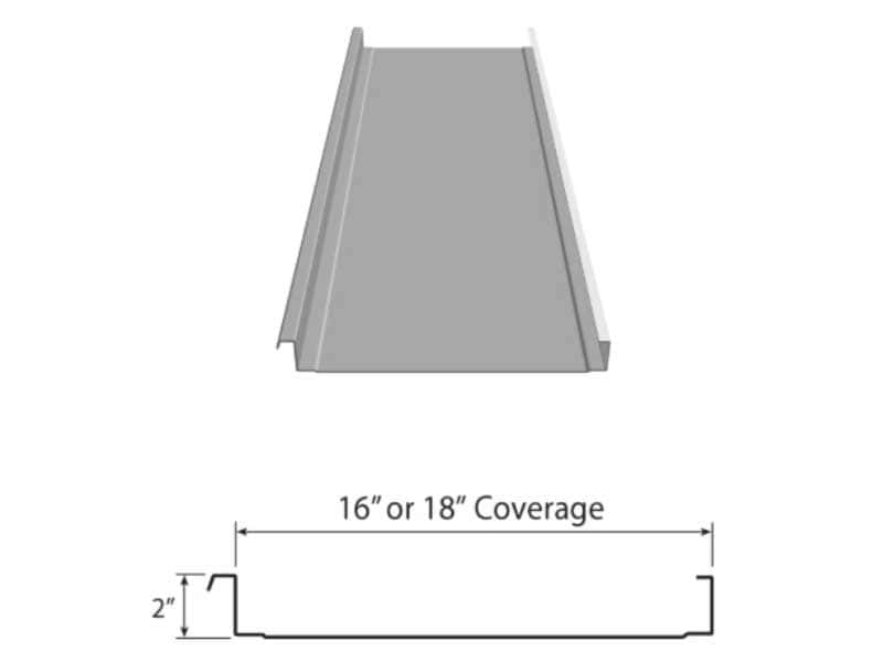 Magna Loc 180, StriatedAcrylic Coated Galvalume, PVDF/FEVECoverage: 16″ & 18″ Roof, Rib Height: 2″, roll formed concelled fasteners